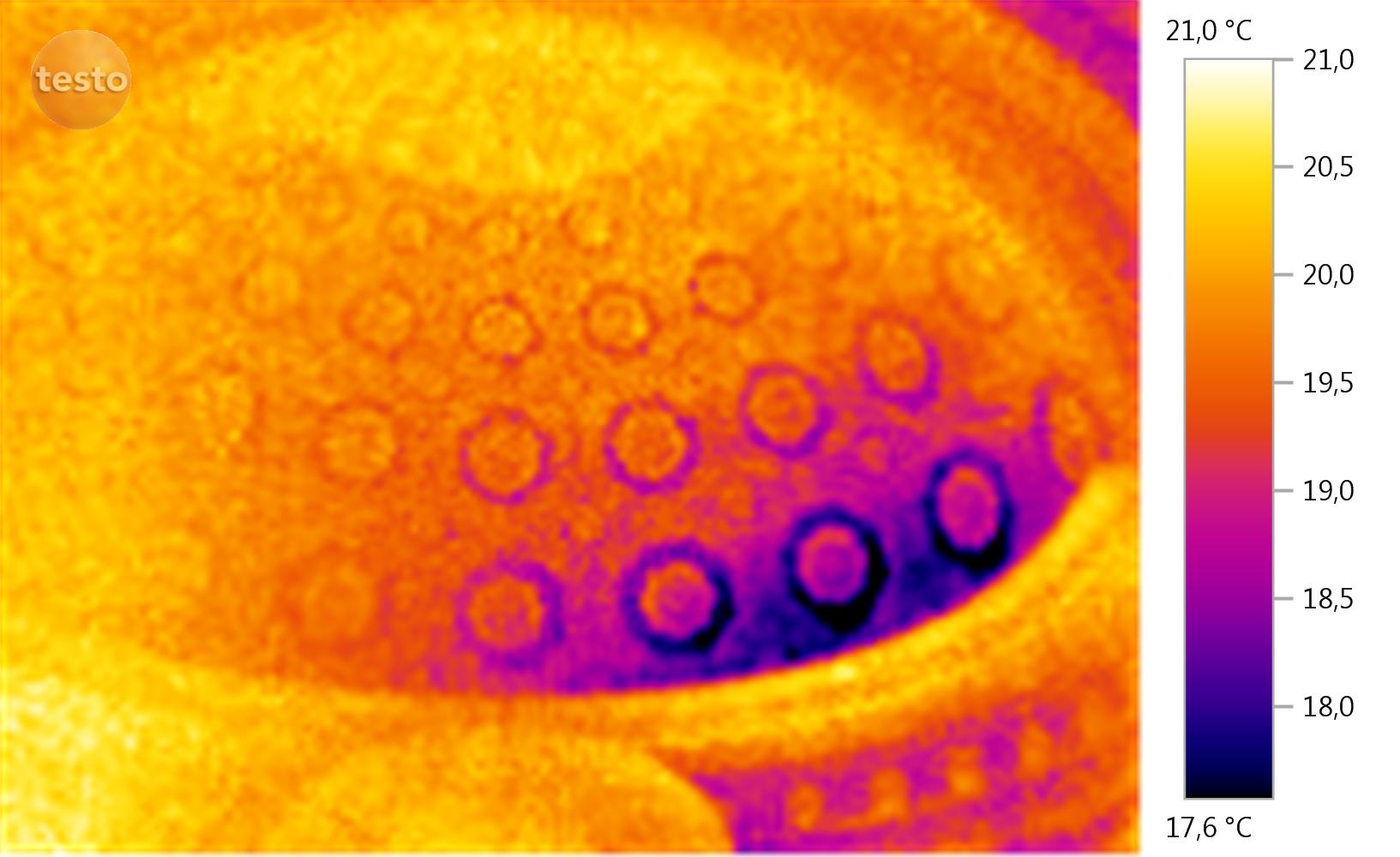 Данная термограмма отражает утечки тепла из-за изъянов в изоляции.