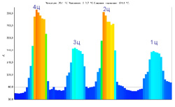При обследовании теплового состояния системы отвода отработавших газов дизеля выявлено аномальное распределение температур по поверхности выхлопного коллектора (рис.4).